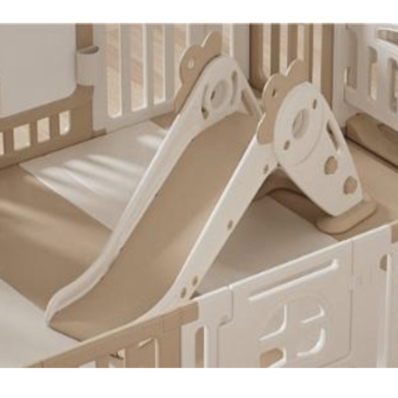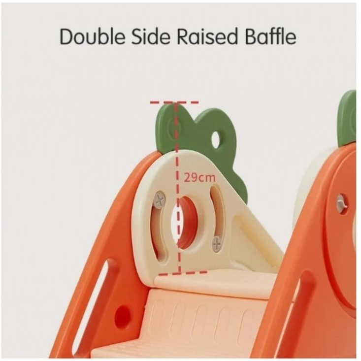 - درابزين مقوس ومرتفع بتصميم مريح لأيدي الطفل الصغيرة للإمساك والتشبث به بشكل مريح، مع درجات صعود مانعة للانزلاق بارتفاع معتدل، ومنطقة انتظار واسعة لضمان تسلق الطفل بشكل آمن