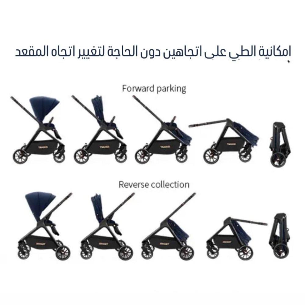 —تصميم ذكي قابل للطي على اتجاهين مهما كان اتجاه مقعد الطفل وذلك لسهولة التنقل وضمان سهولة الحمل.