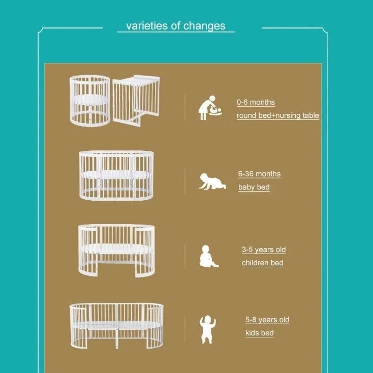 سرير دائري لحديثي الولادة مع طاولة غيار
