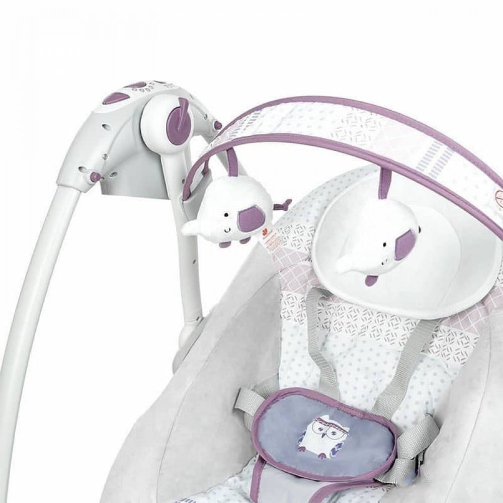 - بالإضافة إلى ذلك ، تم تجهيز أرجوحة الاطفال بقوس مزين بدميتين محشوة ناعمة .