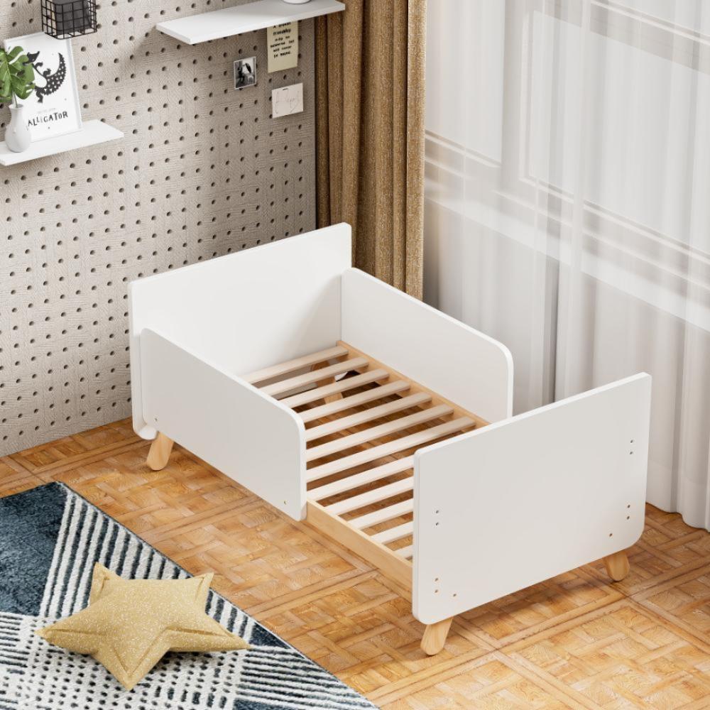 - يوفر سرير خشبي ابيض مساحة كافية للعب حول السرير، مما يشجع على الحركة والنشاط.