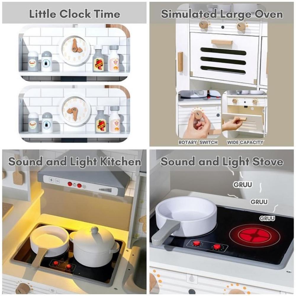 الهدية التي ستبهر أي طفل، المطبخ الخشبي بالأصوات والأضواء ومستلزمات الطبخ.