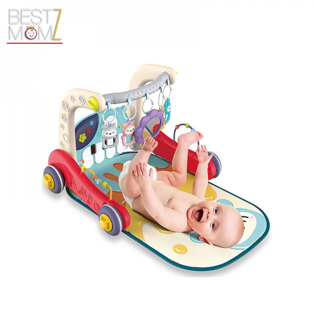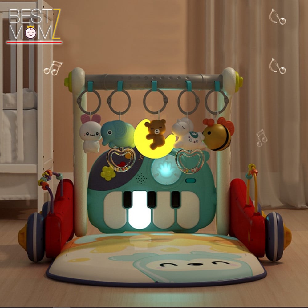 تتميز الحصيرة بدواسة قدم بيانو ذات موسيقى و اضواء للمزيد من المرح و التسلية ، مع لوح العاب اضافي في الخلف .
