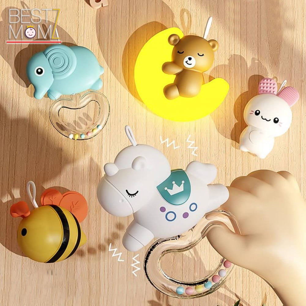 - 4 خشخيشات معلقة ملونة قابلة للفصل ومرآة واحدة مما يساعد على تحفيز القدرات البصرية و الحركية