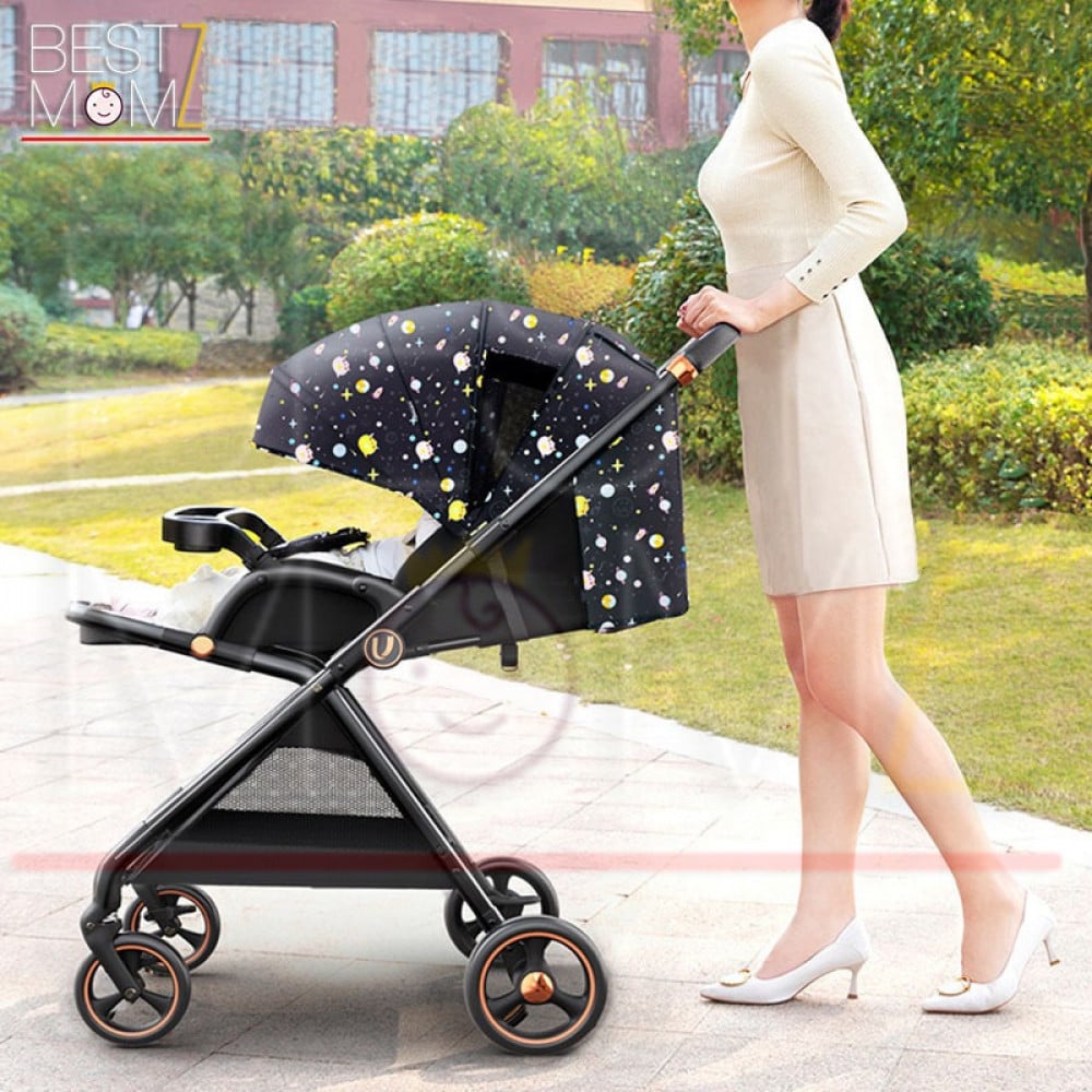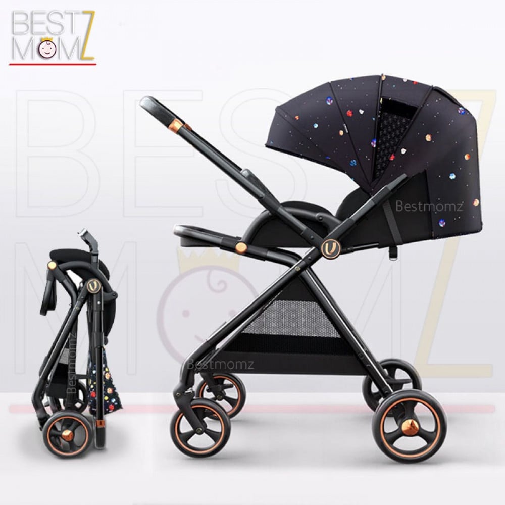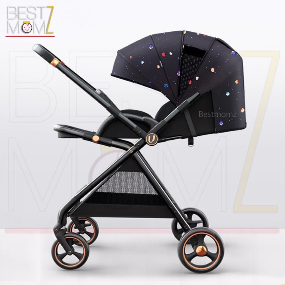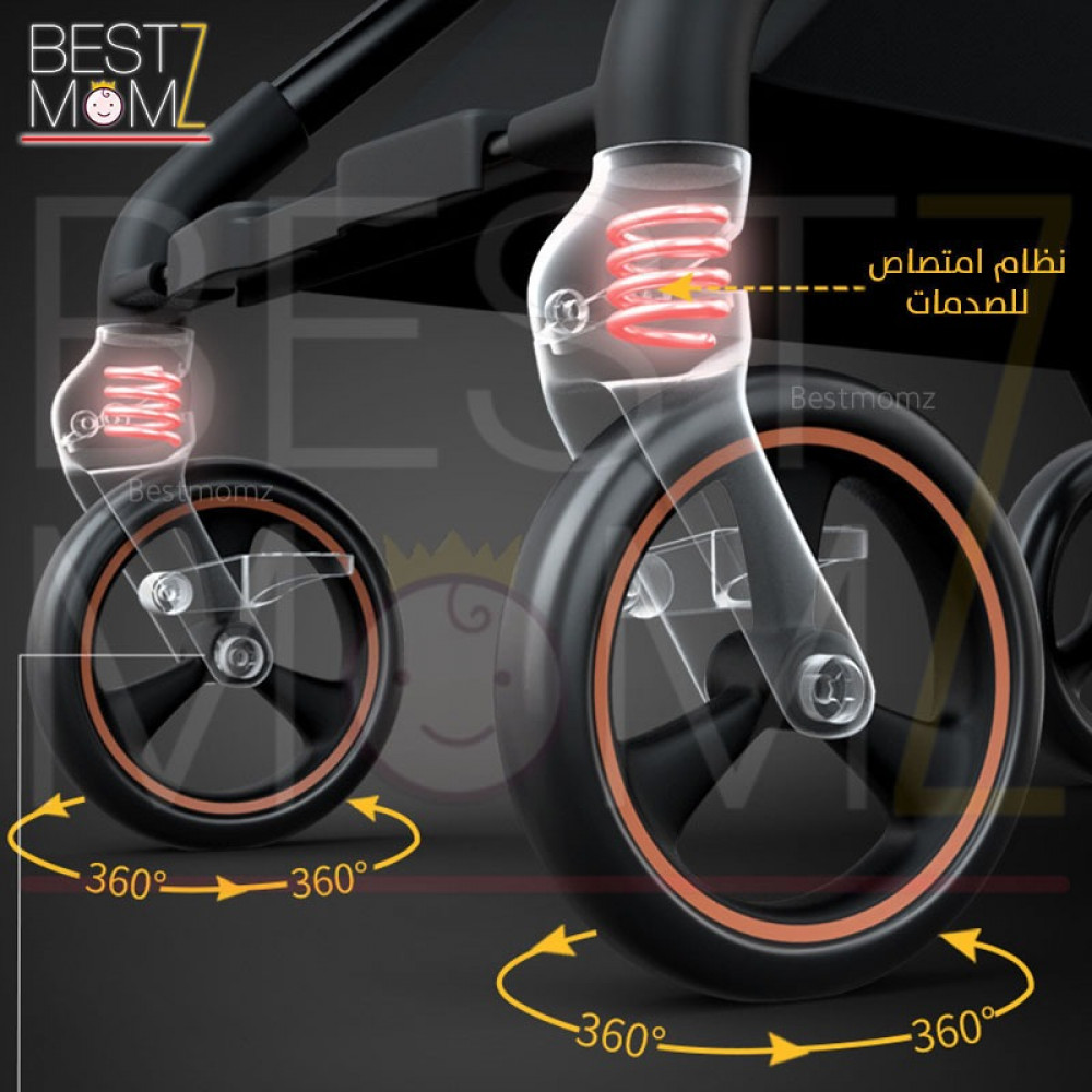 - هيكل من الالمنيوم عالي الجودة بتفاصيل ذهبية تضفي لمسة من الفخامة على العربة