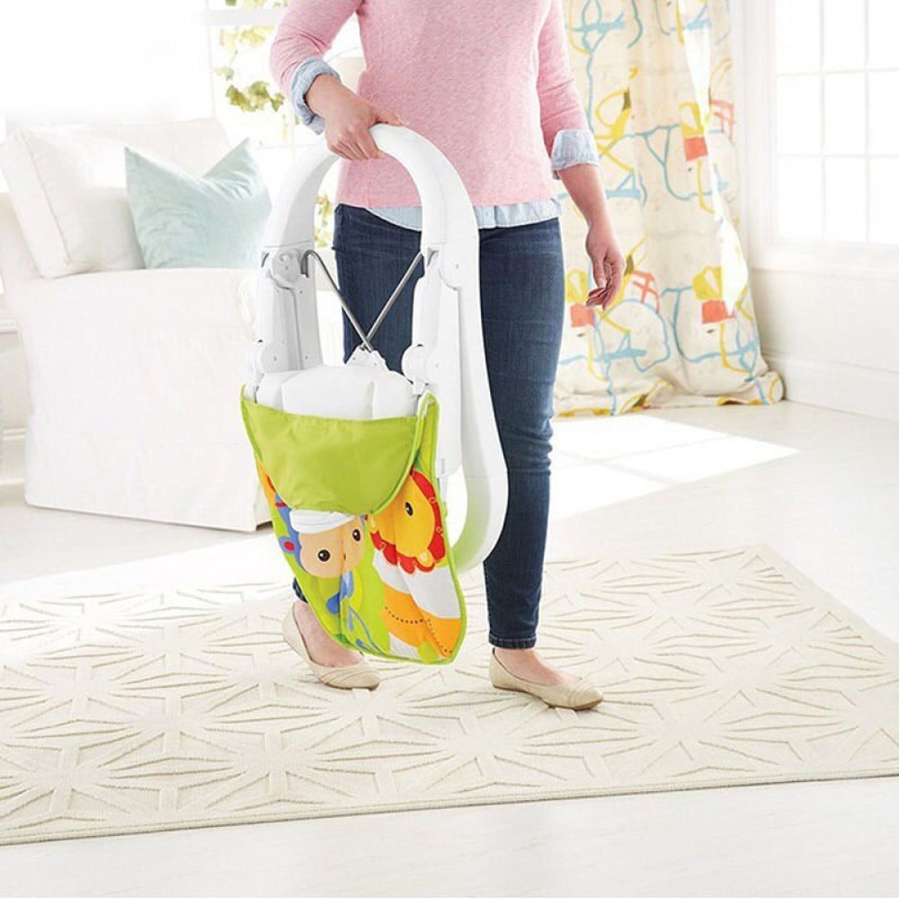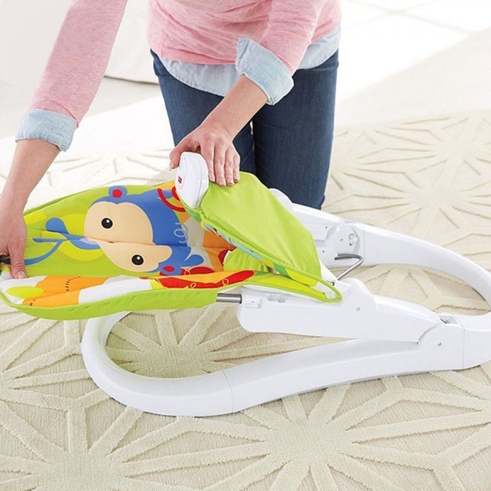 • يمكن طي الكرسي الهزاز للأطفال بشكل مسطح لتخزين مريح في المنزل أو اصطحبه معك في نزهة على الأقدام.