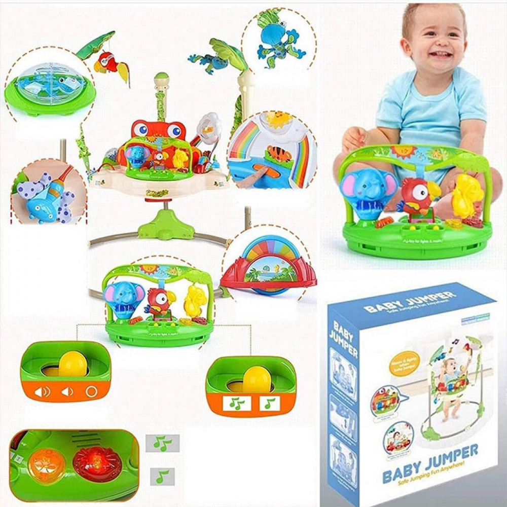 يكافئ قفزات الطفل بالأضواء والأصوات والموسيقى!يتيح للطفل القفز بأمان - لا حاجة لوجود الباببيانو موسيقي يضيءذراع ألعاب بجوانب طرية وناعمة قابل للتعليق فوق الرأس مع كرة دوّارة وقرد وأداتين دوّارتين مع صديقين من أصدقاء Rainforestعضّاضة ضفدغ بشكل فقّاعات، وشريط حلقات مطقطق، وسلحفاة تطقطقالقفز والتدريب العملي على ألعاب الأنشطة يشجّعان على نمو المهارات الحركية وتطوّرها لدى الطفلتعمل الأصوات والموسيقى والأنسجة المختلفة والعضّاضة على تحفيز حواس الطفلقابل للطيّ لسهولة الحمل والتنقّل وموفّر للمساحة عند التخزينقابل للغسل في الغسّالة، ومفرش المقعد قابل للتجفيف في النشّافةيتطلّب 3 بطارياتAAالوصف:أضواء، أصوات، موسيقى، وألعاب الأصدقاء من Rainforest .. والكثير الكثير من القفز والمرح! كرسي نطّاط مع قفز أكثر ومرح أكبر، وقدرة أقوى على بناء وتطوير المهارات الحركية لدى الطفل أكثر من أي وقت مضى .. بفضل تصميم قابل للحمل ولتعديل الارتفاع .. وموفّر للمساحة أيضاً! أصدقاء الطفل المفضّلون من Rainforest على استعداد للمرح واللعب على قوس ألعاب الأنشطة طريّ الجوانب، مع لعبة أنشطة محفزّة للحواس في متناول يديه. مع مفاتيح بيانو مضيئة وملوّنة بألوان قوس القزح، وعضّاضة ضفدع بشكل فقّاعات مثالية للتسنين، وشريط حلقات مطقطق مع 3 حلقات ملوّنة تنزلق ذهاباً وإياباً، وسلحفاة تطقطق .. كليك .. كليك .. كليك! هذا ليس كل شيء! تتسبب حركات القفز والركل الطبيعية التي يقوم بها الطفل بنطنطة المقعد للأعلى والأسفل لركوب حماسي كلّه مرح .. وحين يقفز الطفل، تتمّ مكافأته بالأضواء والأصوات والموسيقى! إن الإطار المتين والثابت للكرسي النطّاط قائم بذاته لراحة مثالية (لن يتسبب بحجب مدخل الباب!)، وبطول قابل للتعديل (بحيث "ينمو" مع طفلك!)، وهو قابل للطيّ بسهولة للحمل والتنقّل، وموفّر للمساحة عند التخزين (مع ذراع ألعاب القابل للإزالة والتخزين بسهولة، أيضاً!) يقع النابض النطّاط في الخلف، وهو مغلّف بغطاء من القماش الناعم وبعيد عن متناول الطفل، كما أن المقعد القماشي المبطّن قابل للإزالة لغسله في الغسّالة.