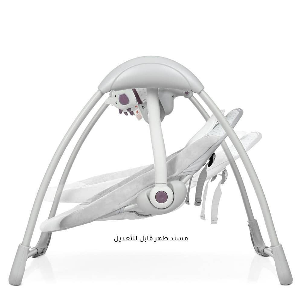 ستسمح الهزازة للأم بالتفرغ لعملها ، في حين أن الطفل سيكون آمنًا تمامًا ، ويستمتع ويتأرجح.تم تجهيز الأرجوحة ب 7 ألحان مهدئة ، بالإضافة إلى جهاز توقيت للإهتزاز 15 و 30 و 45 دقيقة. يمكنك اختيار واحدة من 5 سرعات . وستجعل أحزمة الأمان الجلوس آمنًا تمامًا مع حزام أمان من 5 نقاط .مسند ظهر قابل للتعديل ب3 اوضاع .بالإضافة إلى ذلك ، تم تجهيز الأرجوحة بقوس مزين بدميتين محشوة ناعمة ساحرة.