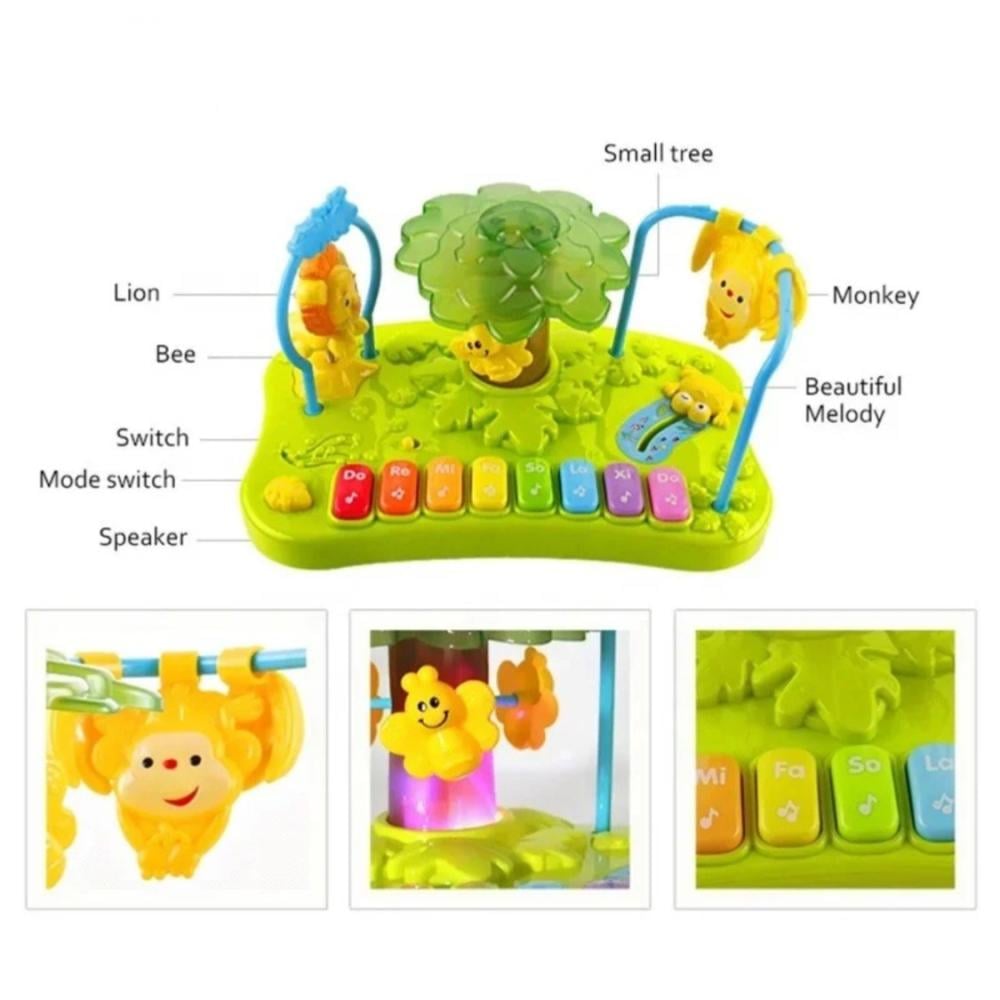 صينية ألعاب موسيقية ملونة ونابضة بالحياة تبقي الطفل مشغولاً أثناء إعداد الوجبة