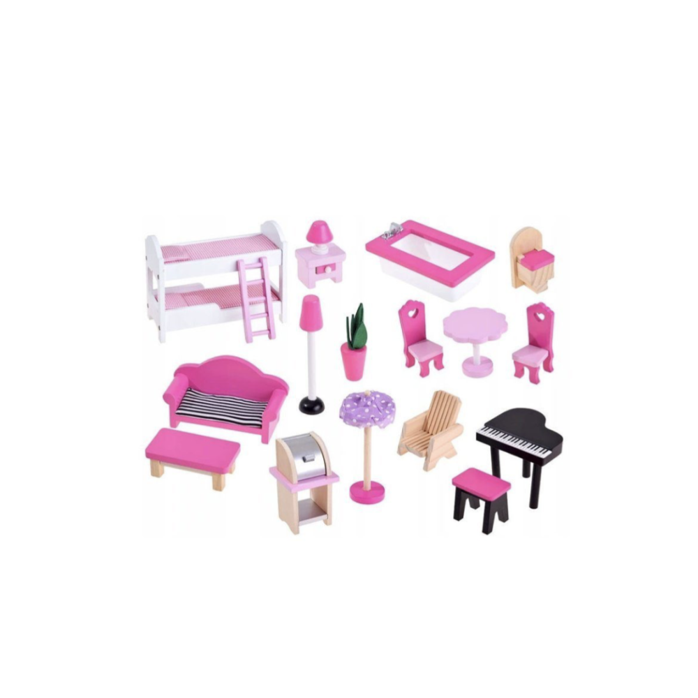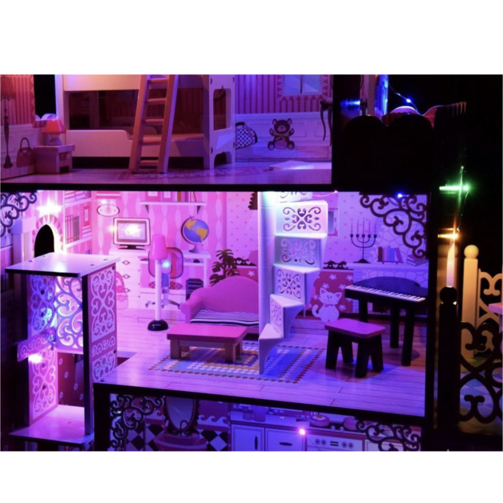 منتج رائع: بيت دمية خشبي جميل بأسلوب عصري بألوان وإضاءة وأثاث لطيف يضمن ساعات من المرح.