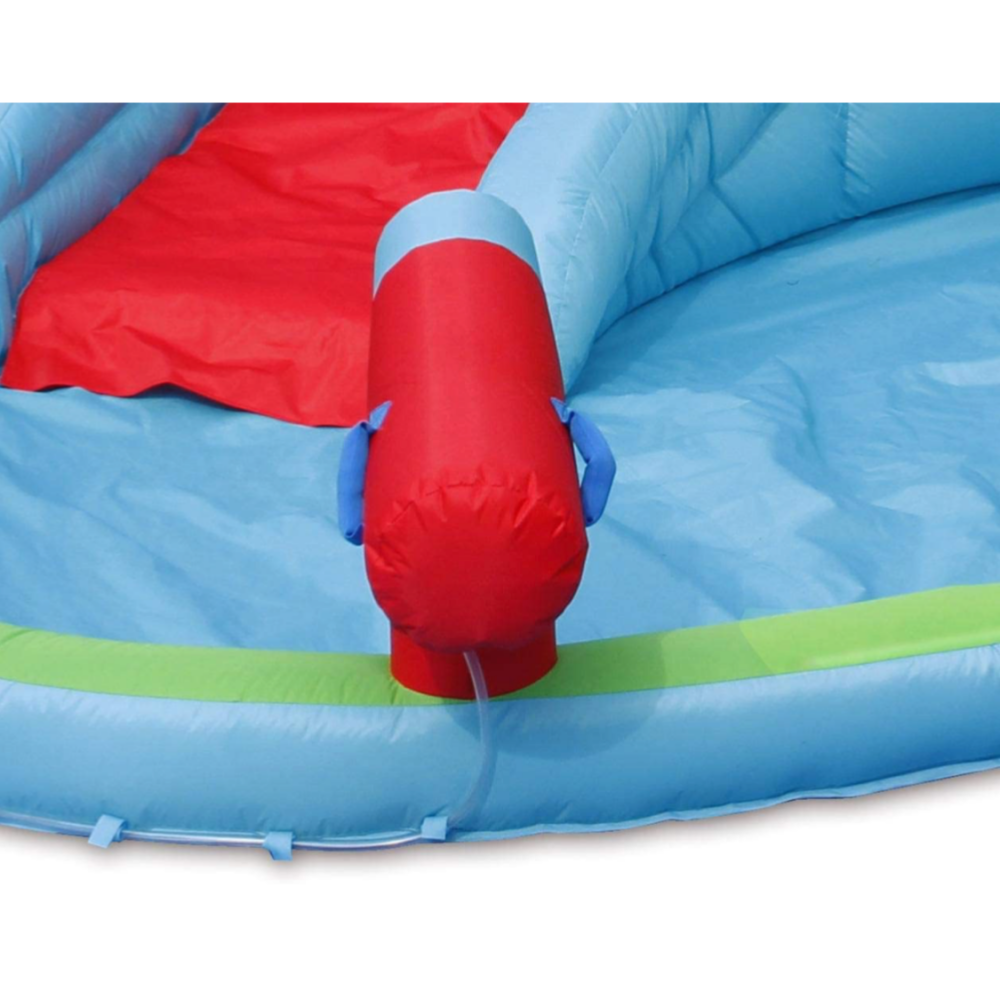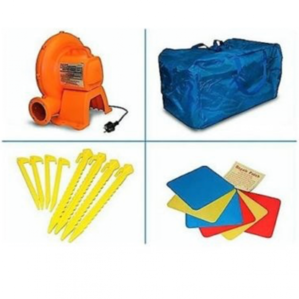 مدعوم من منفاخ هواء كهربائي مستمر التدفق لضمان بقائه منتفخًا أثناء وقت اللعب