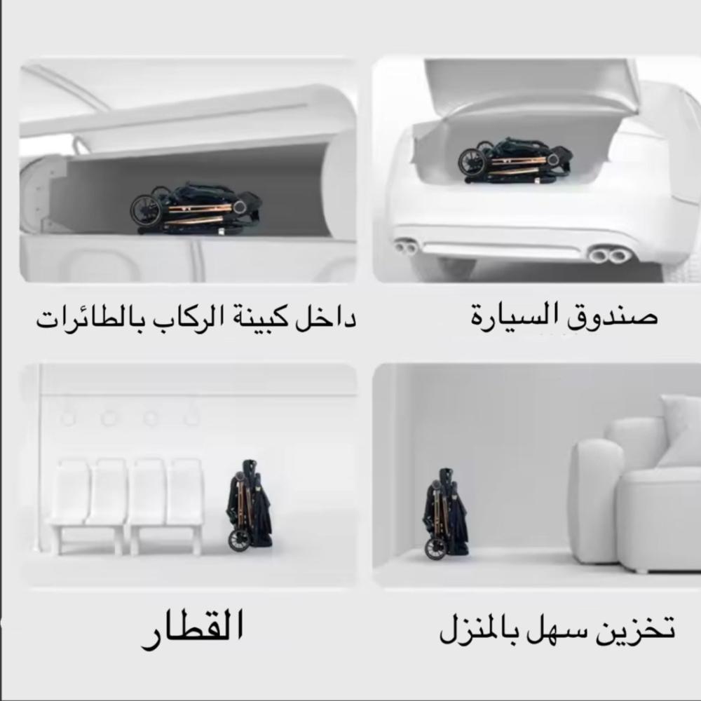 - قابلية الطي: يمكن طي العربة بسهولة لتوفير المساحة أثناء التخزين أو السفر.
