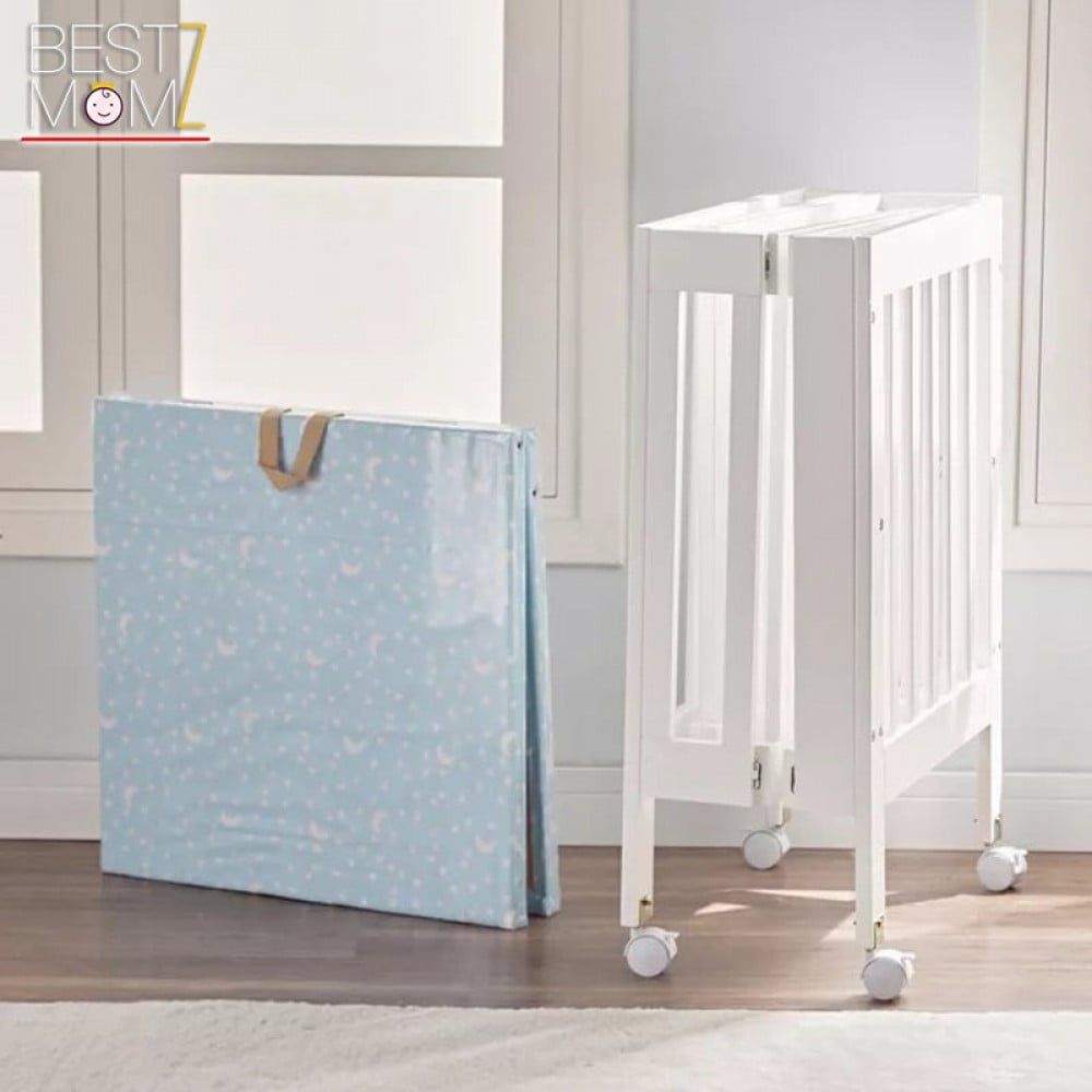 حيث تسمح المفاصل الفريدة من نوعها بطي سرير الأطفال بشكل مسطح للتخزين المضغوط أو السفر.