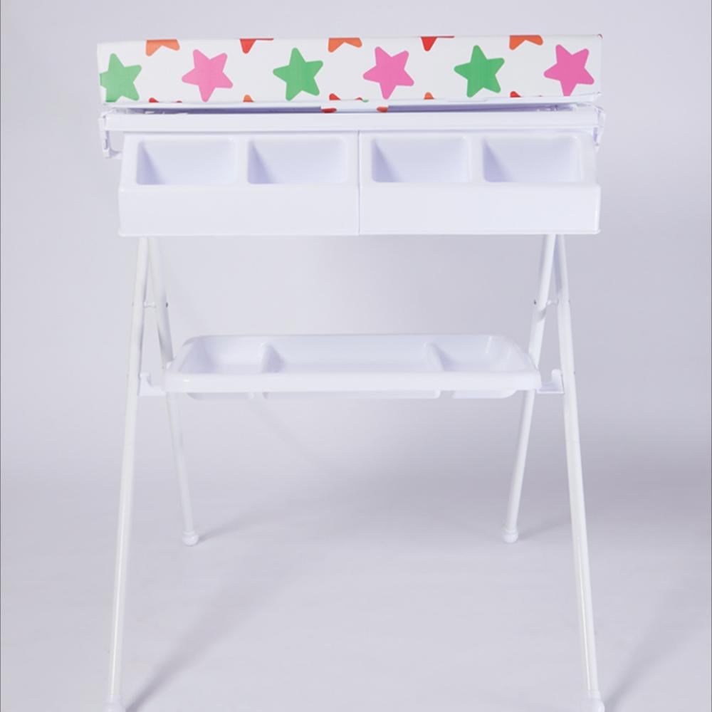 طاولة التغيير قابلة للطي ويمكن تخزينها بعيدًا لتوفير المساحة! طاولة التغيير أيضًا قابلة للإزالة!