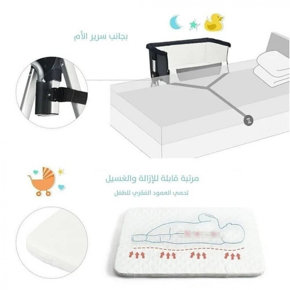 كما يمكن دمج السرير بجانب سرير الام لرعاية طفلك في اي وقت عن طريق احزمة التثبيت الامنه
